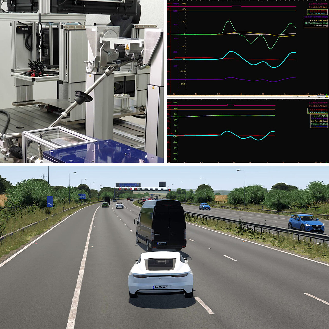 - Real-time tests with physical ECU hardware on the virtual prototype to validate control systems and sensor technology